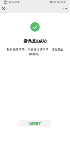 6.完成投诉提交,平台收到后会尽快进行审核