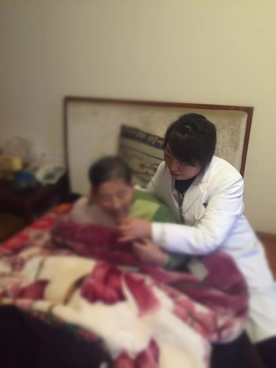 有这么位老人原来挺好的,最近不能吃饭了,路也不能走了。我们就通知他儿子,儿子一来什么事都没有了,饭也能吃了走路也好了。
