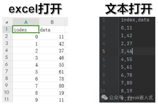 总的来说,组合就是让不同的类混合并且加入其他类中来增加功能和代码重用性,这种适用于由多个小类组成一个大类的情况,并且不需要对小类进行太多修改。在前面示例中,我们实现了主机的串口收发和绘图功能,在实际应用中,我们往往需要将传感器数据存储到文件中,以便后续的查看和处理,很明显前面的传感器数据为一维的时间序列数据,适合存储为表格类型(即列标题为索引和值),我们通常将该类数据保存为csv格式文件,csv是一种字符串文件的格式,它组织数据的语法就是在字符串之间加分隔符(行与行之间是加换行符,同行字符之间是加逗号分隔),可以用任意的文本编辑器打开(如记事本),也可以用Excel打开,还可以通过Excel把文件另存为csv格式。用csv格式存储数据,读写比较方便,易于实现,文件也会比Excel文件小。但csv文件缺少Excel文件本身的很多功能,如不能嵌入图像和图表,不能生成公式等等。
