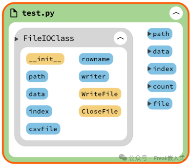 这里,我们首先定义一个FileIOClass类,其中具有初始化方法、写入传感器数据到文件方法和关闭文件方法,示例代码如下: