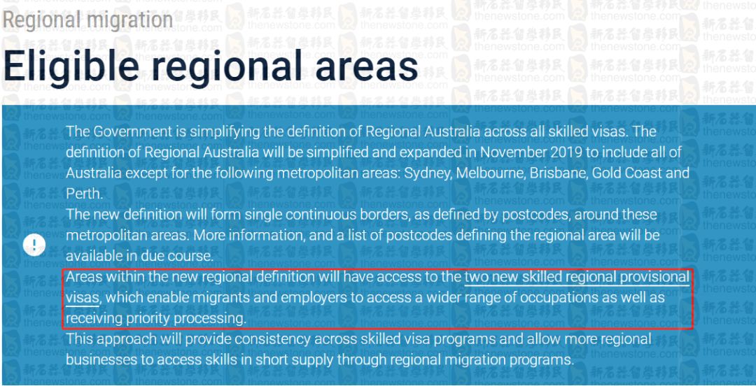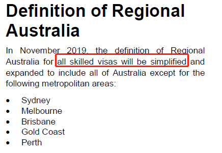 最新文件重新定义了regional area:2019年11月起,悉尼,墨尔本,布里斯班,黄金海岸,珀斯之外的地方,都属于regional area。偏远地区范围被进一步扩大!这应该算利好消息。