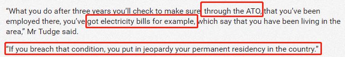 关于regional签证持有人如何证明自己在regional地区注满三年,其实之前移民部长David Coleman及人口部长Alan Tudge就有透露。