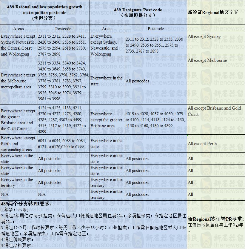 从上面对比表格可以直观地看出,新regional签证在地域范围上扩大了不少,但是要求的居住时间也延长了一年。从这个角度来说,489签证还是有优势的。所以符合489要求的小伙伴,抓紧时间联系新石器赶在今年11月之前递签!