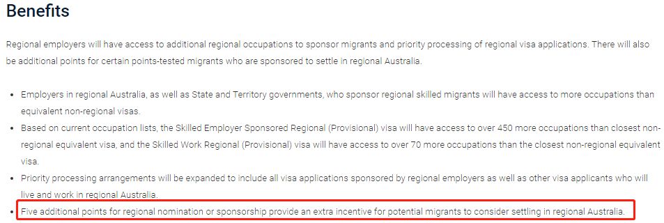 除了上面所说的,提名职业众多,享受优先审理待遇之外。还有最重要的一点,偏远地区新签证申请还会有额外5分加分。