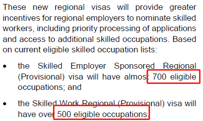 - 提供给获得偏远地区雇主担保的申请人,将可提名接近700个职业
