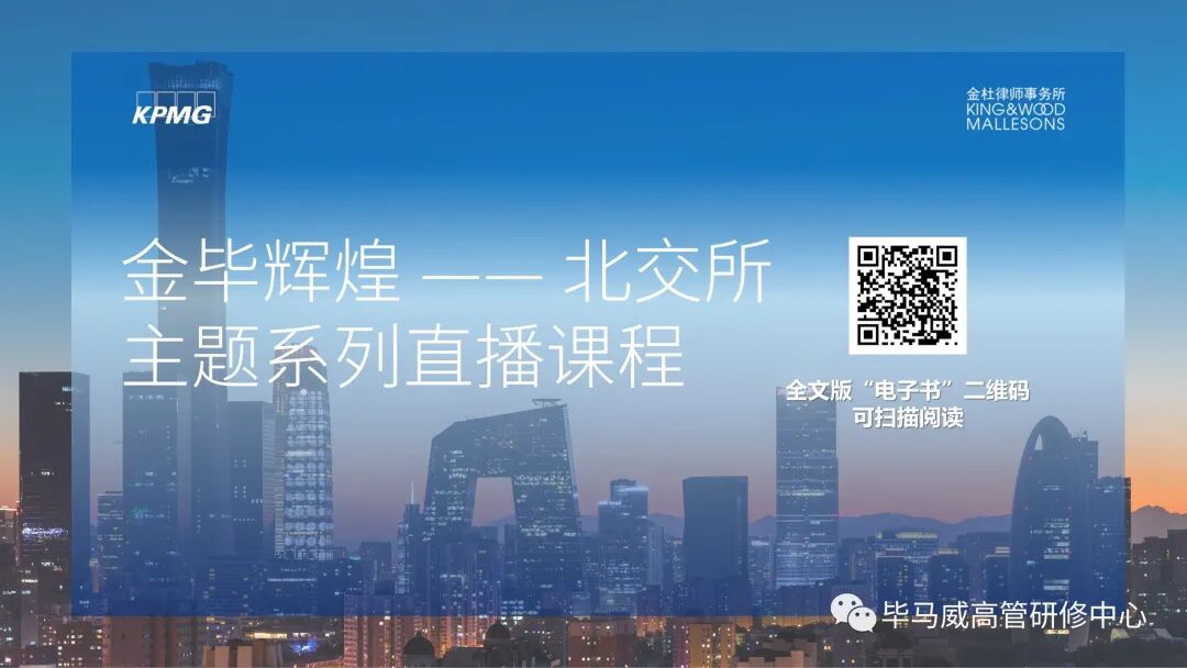 值此之际,毕马威携手金杜,联合推出了北交所主题系列直播课程,从法律和财务角度分享我们的独到观点和业务经验,助力专精特新企业的北交所上市之路。