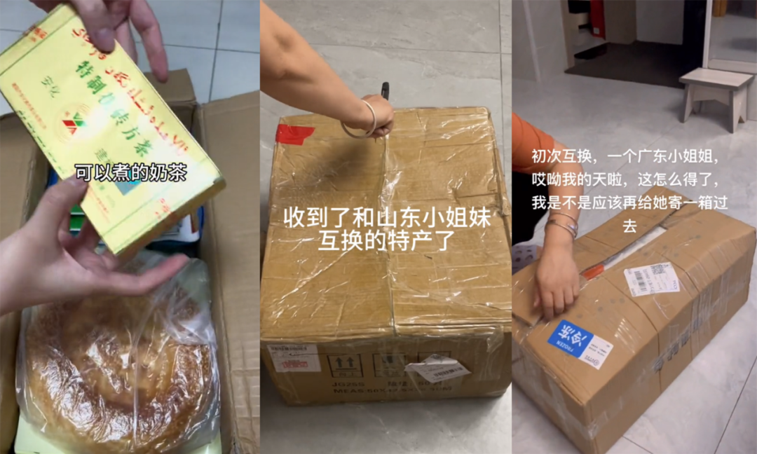 说的就是社交平台上突然爆火的潮流——互换家乡特产。