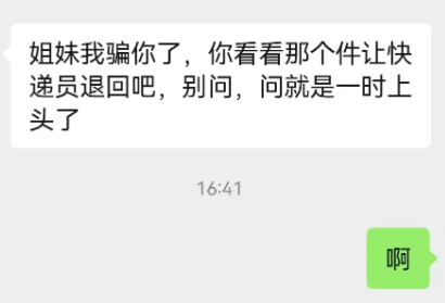 最离谱的是,她这边刚刚显示自己货物被签收,就收到对方的道歉短信。“你说她是个好人吧,只给我寄了两个豆干;说她没良心吧,又提前承认骗我了,她真的我哭死。”一个事实是,真心想跟外地网友互寄特产的人,大多不是贪图那几口吃的。更多是为了被陌生人善待的情感体验,类似食物界的笔友。所以相比于心疼那买特产的百八十块钱,更难受的是真心错付。一位大学生说自乡的特产是茶叶,因为自己不太懂茶还特地问了爸爸,最后精心选了几百块的茶叶,跟一封手写信同时寄出。还有人前期明明跟对方聊得火热,交换特产清单时为了表示nice,说自己“除了臭豆腐什么都可以”。以前过年,爸妈有时会把亲戚送来的成箱礼品转赠给其他亲戚。当初对这种形式主义送礼嗤之以鼻,谁能想到啊,如今自己也遭遇了这样的“情感背刺”。