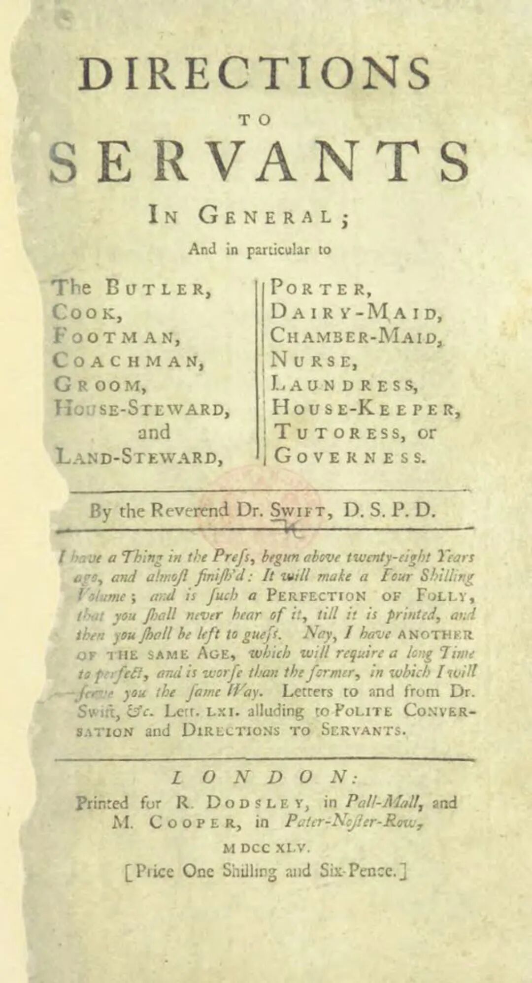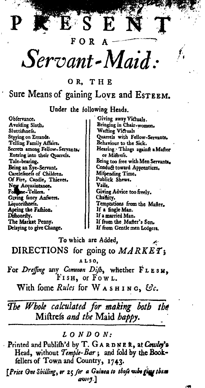 《仆人指南》1745年版封面
