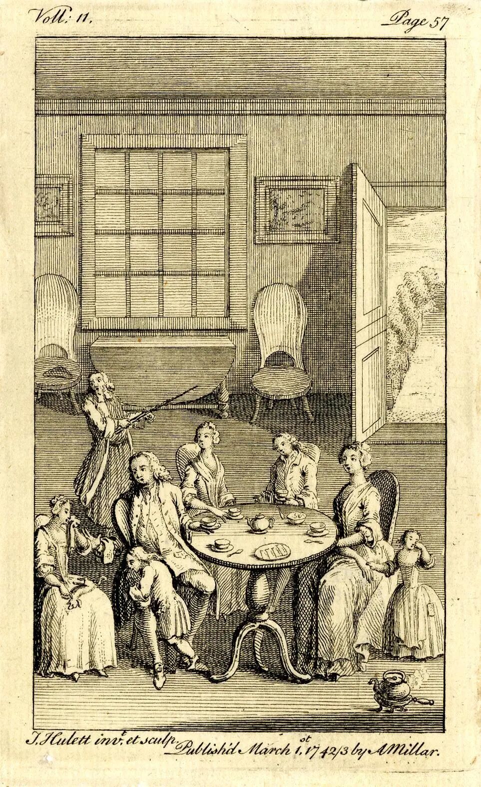 这封信说明《帕梅拉》在十八世纪的知名度。它不仅是读物,是谈资,还是品评人物、事件的一个比附。这封信也反映了当时对《帕梅拉》的一种看法。今天的人讨论《帕梅拉》,大都侧重它的形式,它的叙述、表达的方法。而当时的人所关心的却是它的社会影响。蒙塔古夫人心里不舒服。她觉得奥克塔维娅早就有谋产业、谋地位的心计,不是一个思不出其位的本分人,而伯爵则是坦诚有余,而涉世欠深。她用的是“tender”这个字,直译就是“嫩了一点”。蒙塔古夫人对奥克塔维娅的看法,也是她对《帕梅拉》的看法。当时持这种看法的,远不止她一人。然而,欣赏《帕梅拉》的也是大有人在。《帕梅拉》出版之后不久,伦敦以西的斯劳(Slough)小镇的村民每天聚在一起“听书”,——听《帕梅拉》。他们听到帕梅拉最后终于嫁给了B先生,兴奋非常,一起拥到教堂去敲钟庆贺。类似的情况也发生在兰克夏的普雷斯顿,这儿在十八世纪也算是偏僻的地方,当地的报纸连载《帕梅拉》的节选,刊出帕梅拉结婚情节的那天,当地的教堂不但鸣钟,还挂上了彩旗。[3]《帕梅拉》是一个仆人的故事,一个仆人交了好运,这样的故事颇得小镇读者的喜欢。