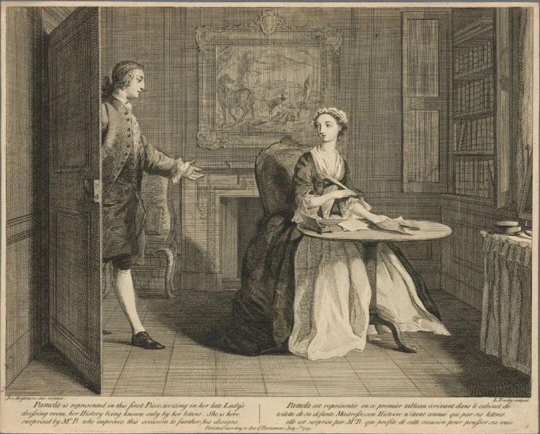 另有一个例子,见于理查逊重印《帕梅拉》时的前言。前言里都是作者收到的读者来信。其中一封来自他的朋友希尔(Aaron Hill),日期是1740年12月7日。希尔说,收到寄赠的《帕梅拉》,他每天晚上都给家里人朗读,两个女儿都听得很入神。有一个希尔收养的穷男孩,每次不邀自来,故事的情节、词句,长记不忘,很多段落都能背诵。听到动情的地方,只是在角落里抱头掩泣。[4] 希尔是兼爱写作的富商,他的女儿爱听《帕梅拉》,是因为故事生动逼真。那个穷孩子则是动了身世之感。理查逊没有想到,《帕梅拉》会一版再版,大行于世。他更没有想到,《帕梅拉》会成为议论和说教的根据,还会成为其他作品创作的渊源。