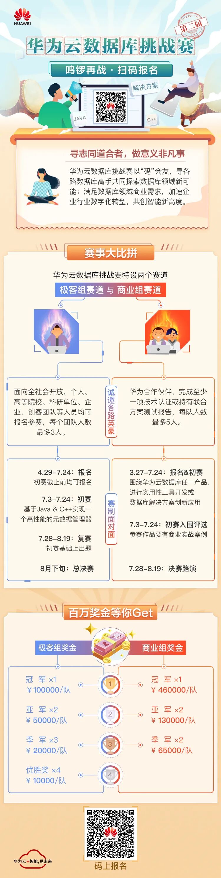 这里有高达百万的奖金权益,有一大波呼朋唤友的全民拉新奖品,有展示自我技能的广阔舞台,还有入职华为的工作机会,年薪百万不是梦。如果你有一点点心动,那请不要错过这场华为云数据库挑战赛,加入我们成为今年夏天大赛舞台最靓的“仔”。