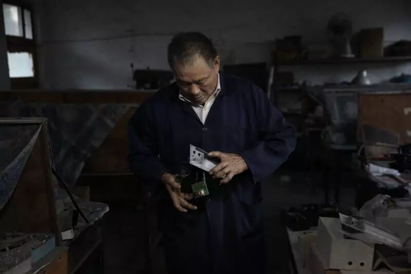 享受国务院特殊津贴的老工程师向阳生,在如今破败的敏感仪器厂车间摆弄所生产的产品。 新京报记者 尹亚飞 摄