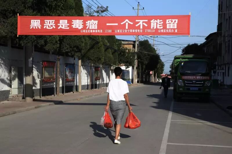 打黑标语和条幅在小庄村也随处可见,大红底色条幅上写着:黑恶是毒瘤,一个不能留。