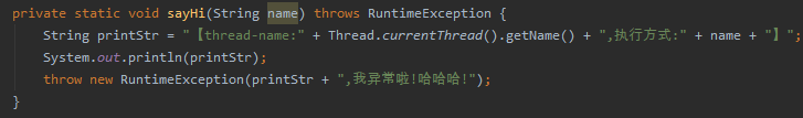 throw new RuntimeException(printStr + ",我异常啦!哈哈哈!");