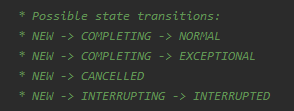 所以,一目了然,一个任务的终态有四种:NORMAL、EXCEPTIONAL、CANCELLED、INTERRUPTED。