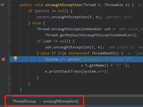 如果你没有捕获异常,JVM 会帮你调用这个方法: