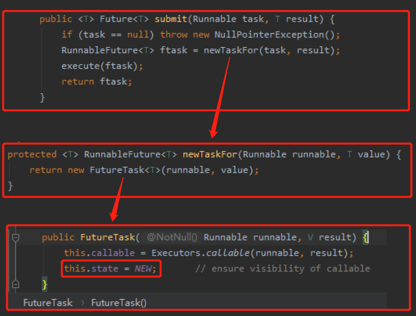 可以看到,FutureTask 的构造方法里面默认了状态为 NEW。
