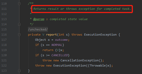 当 FutureTask 的 status 为 NORMAL 时正常返回结果,当 status 为 EXCEPTIONAL 时抛出异常。