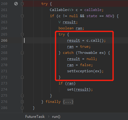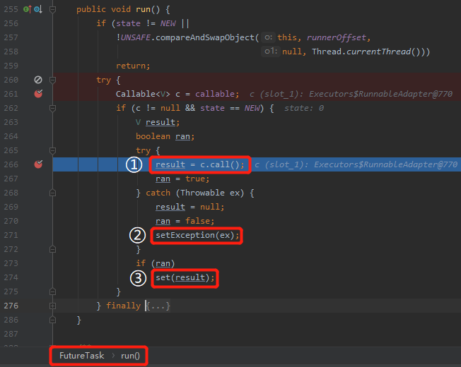 跟着断点进去之后,就是 FutureTask 的 run 方法: