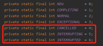 说明当前的状态是 CANCELLED 或者 INTERRUPTING 或者 INTERRUPTED。