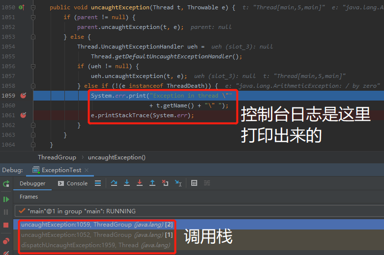 我们并没有捕获异常,打印堆栈信息的相关代码,那么这个异常是谁打印的?