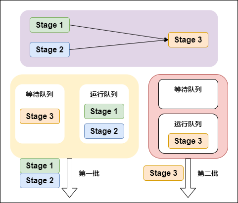Spark:Spark中分区相同的转换构成流水线在一个task中执行,分区不同的需要进行shuffle操作,被划分成不同的stage需要等待前面的stage执行完才能执行。