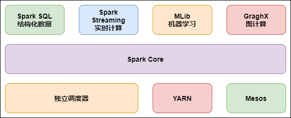 Spark Core:实现了 Spark 的基本功能,包含 RDD、任务调度、内存管理、错误恢复、与存储系统交互等模块。