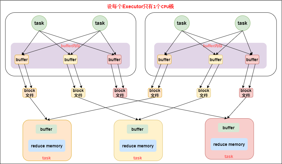 假设有100个Executor,1000个task,那么每个Executor分配到10个task,之后,Driver要频繁地跟Executor上运行的1000个task进行通信,通信数据非常多,并且通信品类特别高。这就导致有可能在Spark任务运行过程中,由于频繁大量的网络通讯,本地机器的网卡流量会激增。