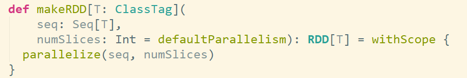 由一个已经存在的 Scala 集合创建:val rdd3 = sc.parallelize(Array(1,2,3,4,5,6,7,8))或者val rdd4 = sc.makeRDD(List(1,2,3,4,5,6,7,8))