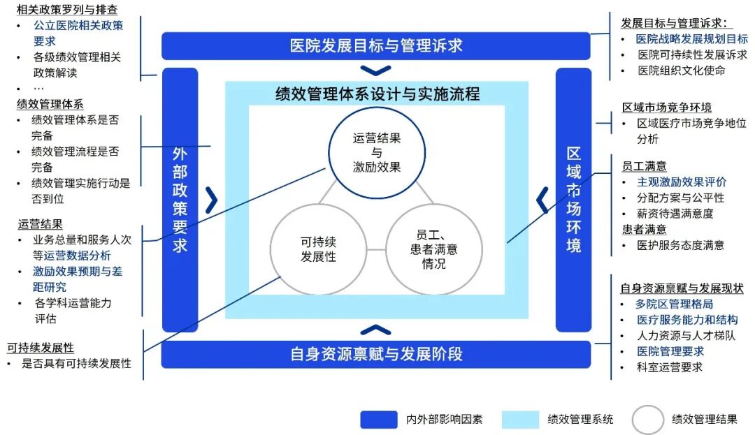 通过系统性研读分析医院政策要求与各类资料分析,深入调研访谈医院管理者、医院临床、管理后勤工作人员,深度了解剖析医院经营状况、主要问题及成因,通过根因分析,发现造成经营问题的绩效管理相关因素,指出改革重点与优化方向。