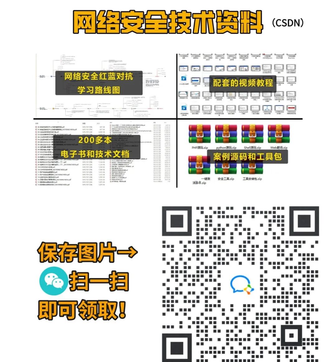 全套《黑客&网络安全入门&进阶学习资源包》,可以扫描下方二维码免费领取(如遇扫码问题,可以在评论区留言领取哦)~
