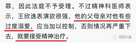 从当时新闻来看,精神科医生已经介入,提醒王欣逸父母不要对他过度溺爱,否则他的心理状况恶化,要接受精神治疗。