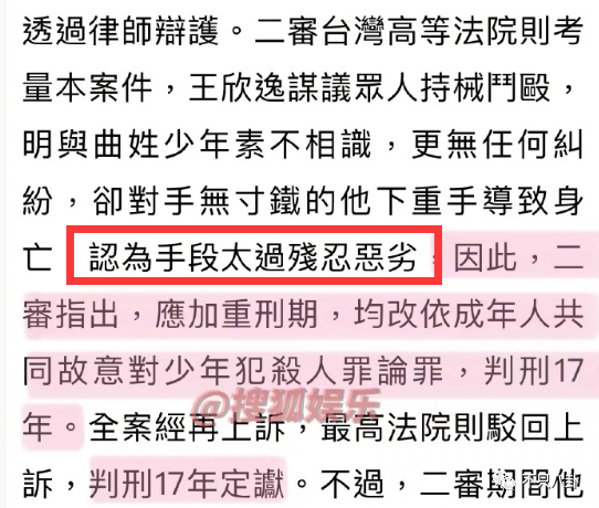 听闻此事与昔日童星相关,台媒深感震惊,甚至为王欣逸杀人案做了专题报道。