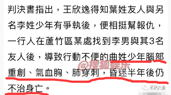 从当时台媒的新闻报道看,王欣逸持西瓜刀、球棒等凶器追打仇家,年仅14岁的曲某不幸跌倒落单,成了被攻击对象,惨被王欣逸等人持刀挥砍。