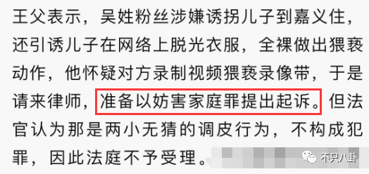 王欣逸爸爸以“妨害家庭罪”将女粉丝告上法庭,把所有过错都推到了女方身上,法官认为这不构成犯罪。