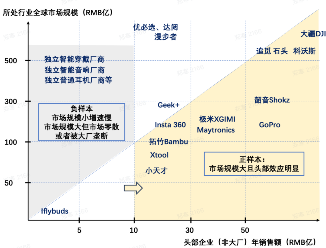 - 对于所有消费电子产品,找到一个合适的细分人群是关键。比如耳机市场下的细分赛道运动耳机,或者是手表下的儿童智能手表;虽然大类产品的需求大厂也可以满足,但在细分市场仍有十几二十几的空间存在,有的甚至可以达到几十亿的规模。