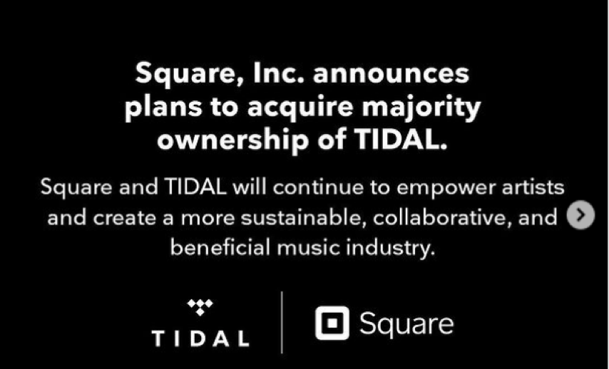 2021年3月 Square 宣布将以现金+股票共计 2.97 亿美元收购 Tidal 多数股份