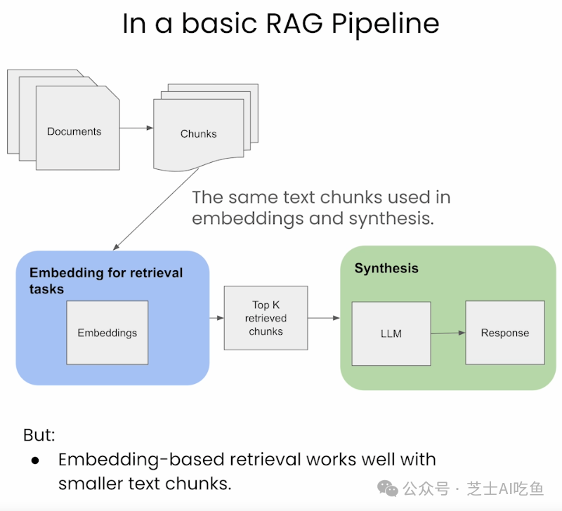 在 RAG 中,每个分块都将被编码成嵌入向量以便检索。更小、更精确的块可以实现用户查询内容之间更精细的匹配,从而提高检索信息的准确性和相关性。