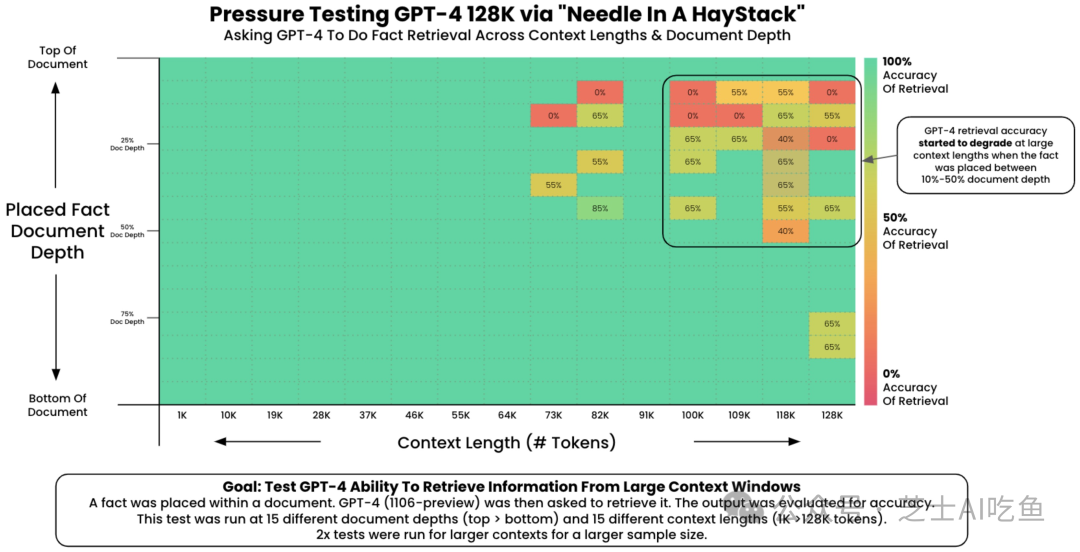 最近,OpenAI 推出了一种名为 GPT-4 Turbo 的新型模型,该模型号称能够处理大型文档,有可能解决这方面的需求。然而,由于“迷失中央 (Lost In The The Middle)”现象的存在,该模型的效率并不是很高。这种现象类似于我们阅读整本圣经,却记不起撒母耳记之后的内容,该模型也倾向于忘记其上下文窗口中间部分的内容。
