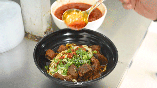 除了干吃,最受欢迎的吃法还是拌面。当然你也可以盛一碗免费的牛清汤,或是干脆吃得重口味一些,蘸一下餐厅自制的辣酱,感受1种牛肉的不同风味~