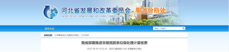 近日,河北省发改委会同省住房和城乡建设厅联合印发《关于推进非居民厨余垃圾处理计量收费等有关事项的通知》。