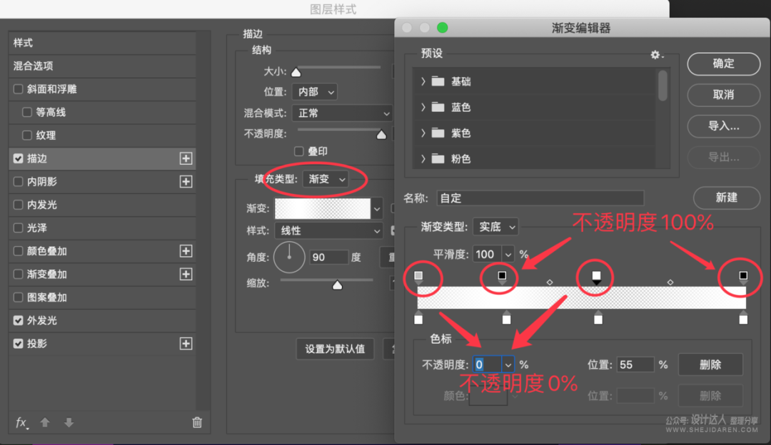 【描边】使用渐变描边(直接描边也可以,但效果没那么好)