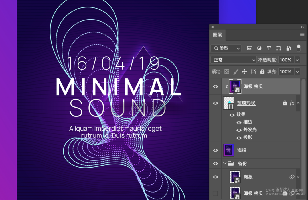 先完成海报设计,再做玻璃形状来实现玻璃效果。