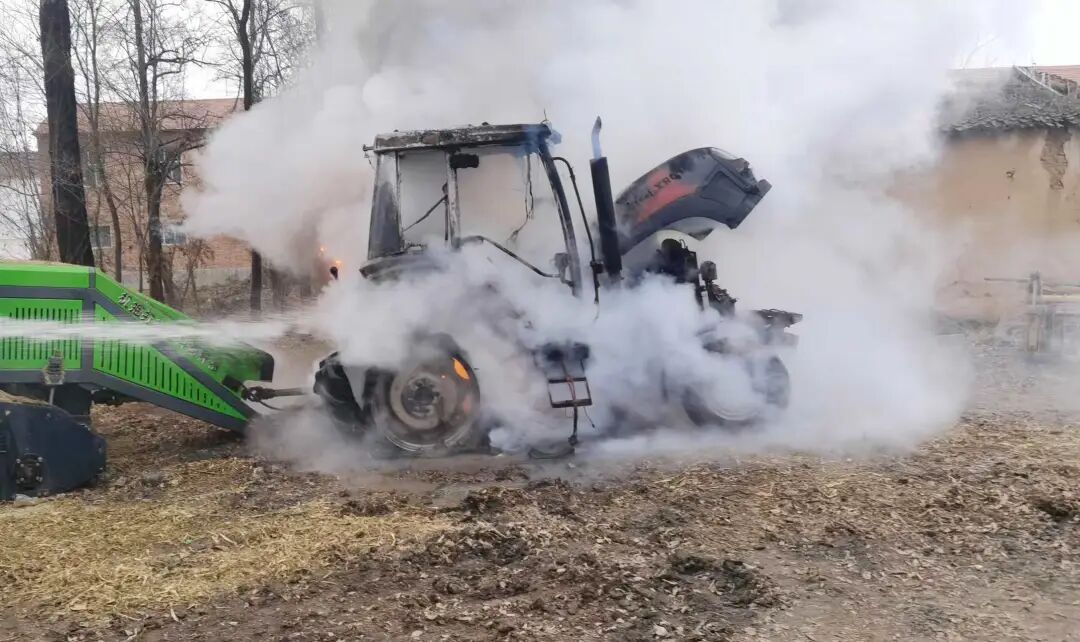 大队消防救援人员火速赶到现场经侦查发现,一辆停靠在路边的拖拉机正处于猛烈燃烧状态,火苗不断向周围猛蹿,由于周围有大量树木且着火点离房屋较近,如不及时控制火势后果不堪设想。