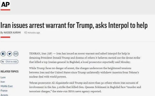 伊朗发出通缉令要逮捕特朗普