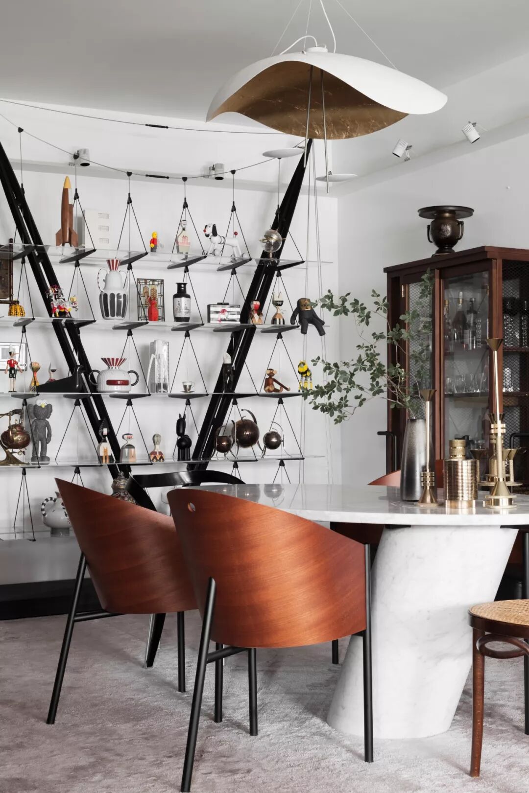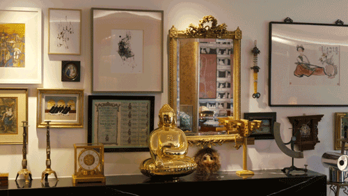 汪昶行是个很爱逛古董商店的人。在纽约做访问学者的时候,他一周要去4、5次古董店,只要是Google地图上标注的古董店,他基本都跑过了。两个人认识之后,去了很多地方旅游,去过了七大洲、五十几个国家、三百多个城市,沿途当然也少不了买买买,只不过买的不是衣服包包,而是收藏品。现在的家里,堆满了他们旅游时候购买的各种收藏品,有奈良美智的白犬音响、Kaws的限量版人物、俄国艺术家马列维特的人物雕像、包豪斯的石膏建筑模型、法国设计师Philippe Starck设计的榨汁机等等。