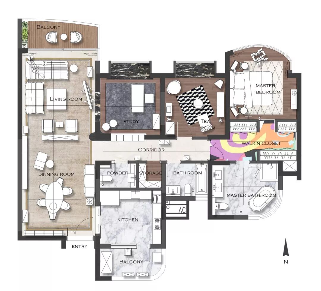 这是汪昶行在2013年买下的,当时是想作为婚房,但因为一直没机会结婚,就这么一直空置着。直到2016年,才和太太一起搬了进来。房子挺大,有187平米。颜色和物件都过于丰富,可以说是一个非常混搭的家。汪昶行说,刚开始这只是一套格局普通的商品房,他们用了一年半到两年的时间,才逐渐把它变成现在的样子。