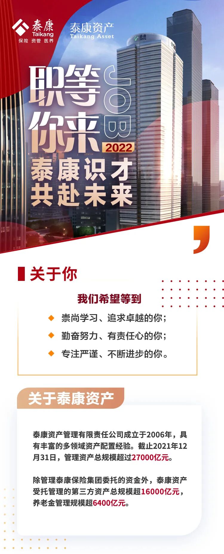 泰康资产社招岗位更新啦!