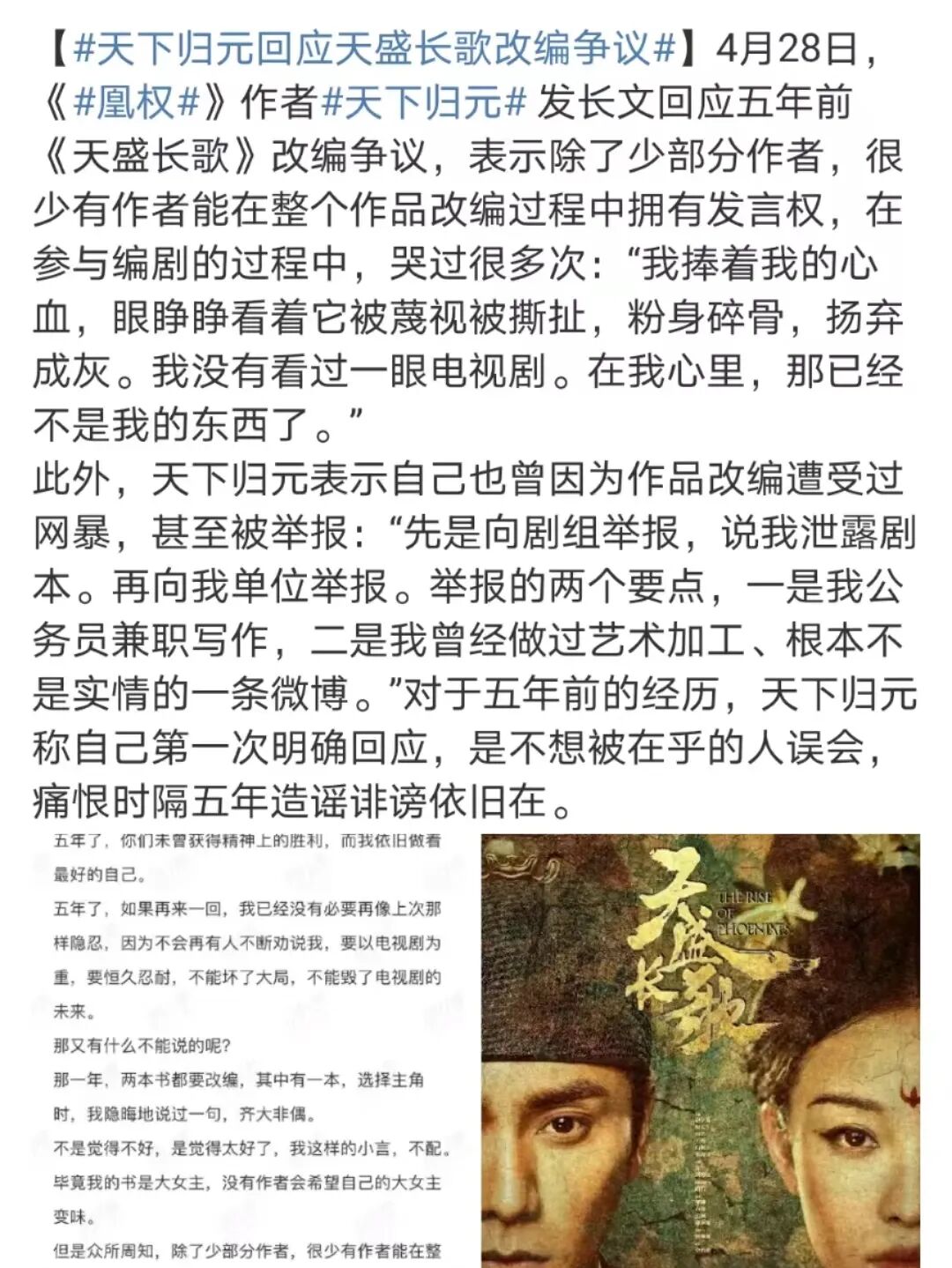 2018年8月14日,由陈坤、倪妮主演的古装权谋大剧《天盛长歌》登陆金鹰独播剧场。该剧收视率一度跌破湖南卫视底盘,也戳中了“唯收视率论”的芒果精(芒果精在战斗:警惕肖战,吐槽正午,大夸尚食)的神经。